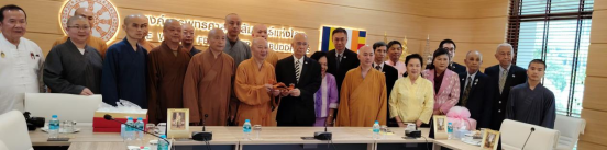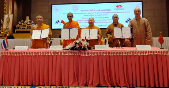 参访期间,广东省佛教协会代表团一行还拜访了曼谷金山寺,与泰国副僧王、金山寺方丈帕·蓬玛西提大师进行了深入的座谈交流。拜访了世界佛教徒联谊会,双方就未来两地佛教合作与弘法事宜展开了深入而富有成效的交流。拜访了摩诃朱拉隆功大学,双方签署佛教英语交流基地与泰国摩诃朱拉隆功大学交流备忘录,推动了双方在佛教学术研究、僧才联合培养等领域合作迈向新阶段。拜访了泰国潮州会馆,与泰国潮州会馆主席徐惠深等侨领进行了亲切友好交流,共叙乡情,进一步增强泰国侨胞的身份认同与归属感。拜访了中国驻泰国大使馆,韩志强大使对广东佛教界为中泰民间外交所做出的贡献给予了充分肯定,并与代表团就加强中泰佛教文化交流合作交换了宝贵意见。
